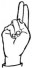 На ћирилици написано БОЖИДАР ГАРОЊА састоји се из 13 слова [?]. Исписано ћириличном једноручном азбуком за глувонеме: